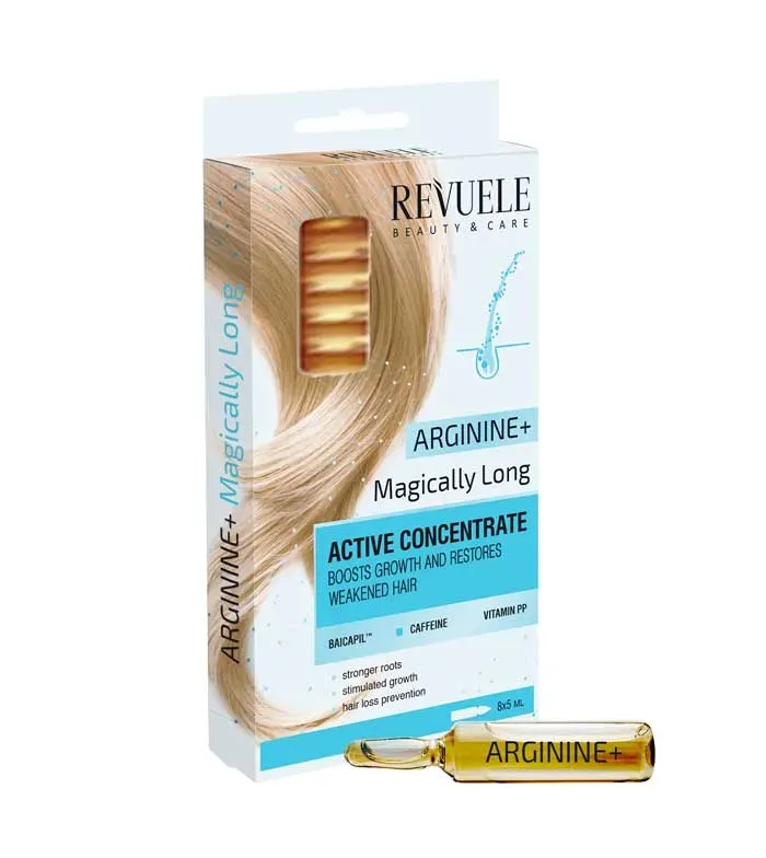 ¡El secreto para tener un cabello sano, largo y brillante ahora está en tus manos! Las ampollas Arginine+ Magically Long de la marca Revuele son un potente concentrado diseñado para estimular el crecimiento del cabello y restaurar su belleza natural.